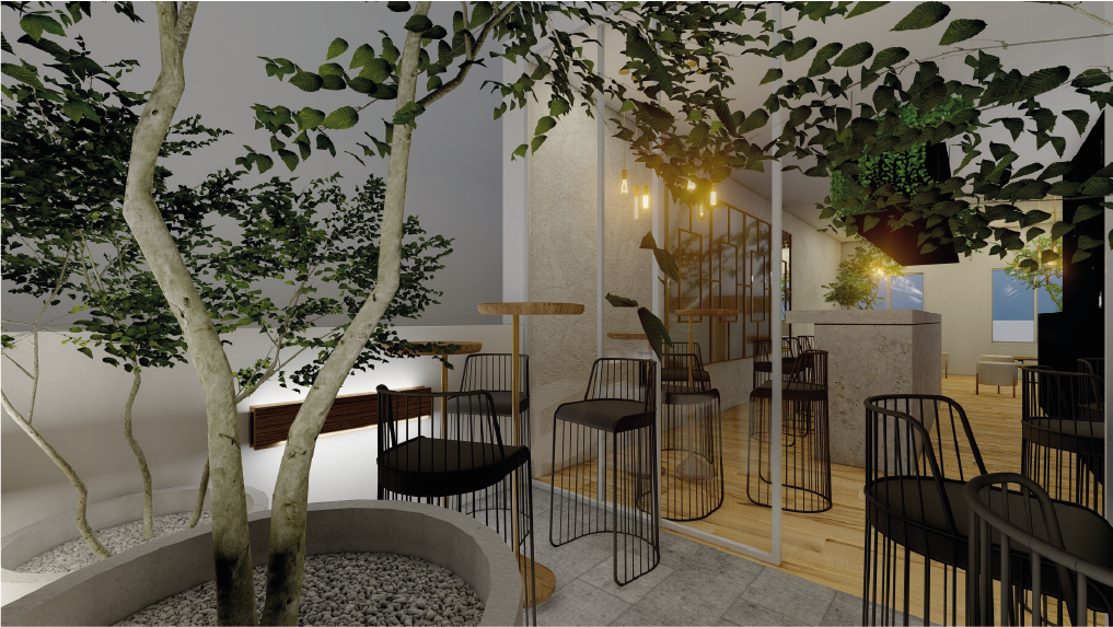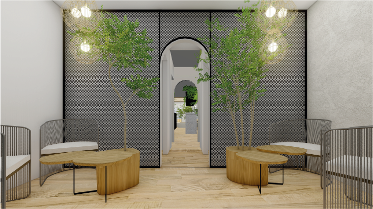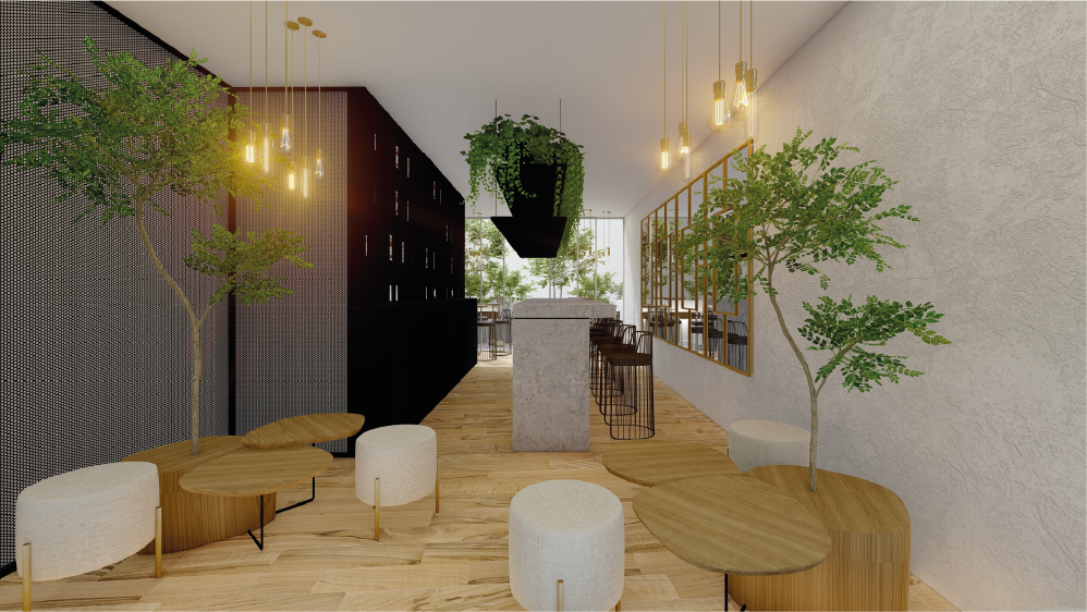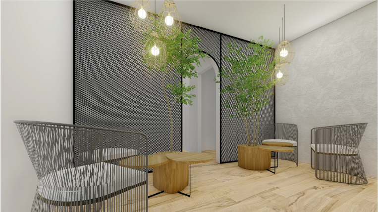 Maridaje entre una arquitectura de interiores actual, subrayada por líneas puras y espacios abiertos, así como una arquitectura heredada de mediados del siglo XIX. El empleo de la piedra como enseña de los antiguos muros y la recuperación de los hermosos ventanales de madera lacada con sus correspondientes contraventanas nos permite situar al edificio en su contexto histórico.